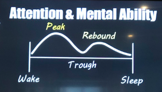 If we know that our cognitive abilities are highest in the morning, let’s not waste this time with busy work or meetings. As we build up to our peak, let’s take full advantage with heads down time.